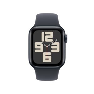 This 40mm GPS smartwatch features a sleek midnight aluminum case with a matching soft sport band, making it stylish and comfortable for daily wear. It helps you stay active, healthy, and safe with smart tracking tools and a clear Retina display.