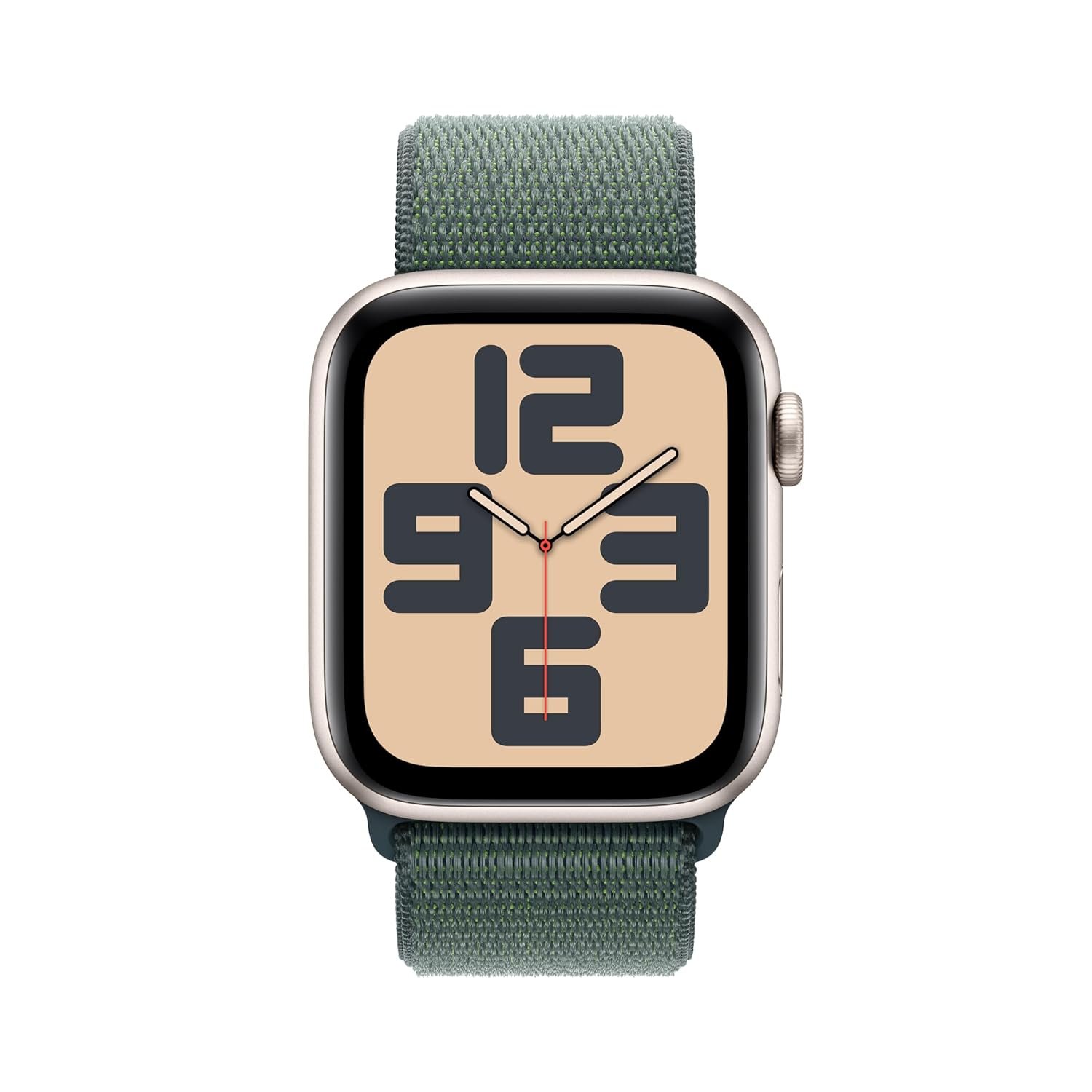 This 44mm GPS + Cellular smartwatch is designed to help you stay connected and active throughout the day. With a stylish starlight aluminum case and a lake green sport loop, it combines comfort, performance, and a modern look.